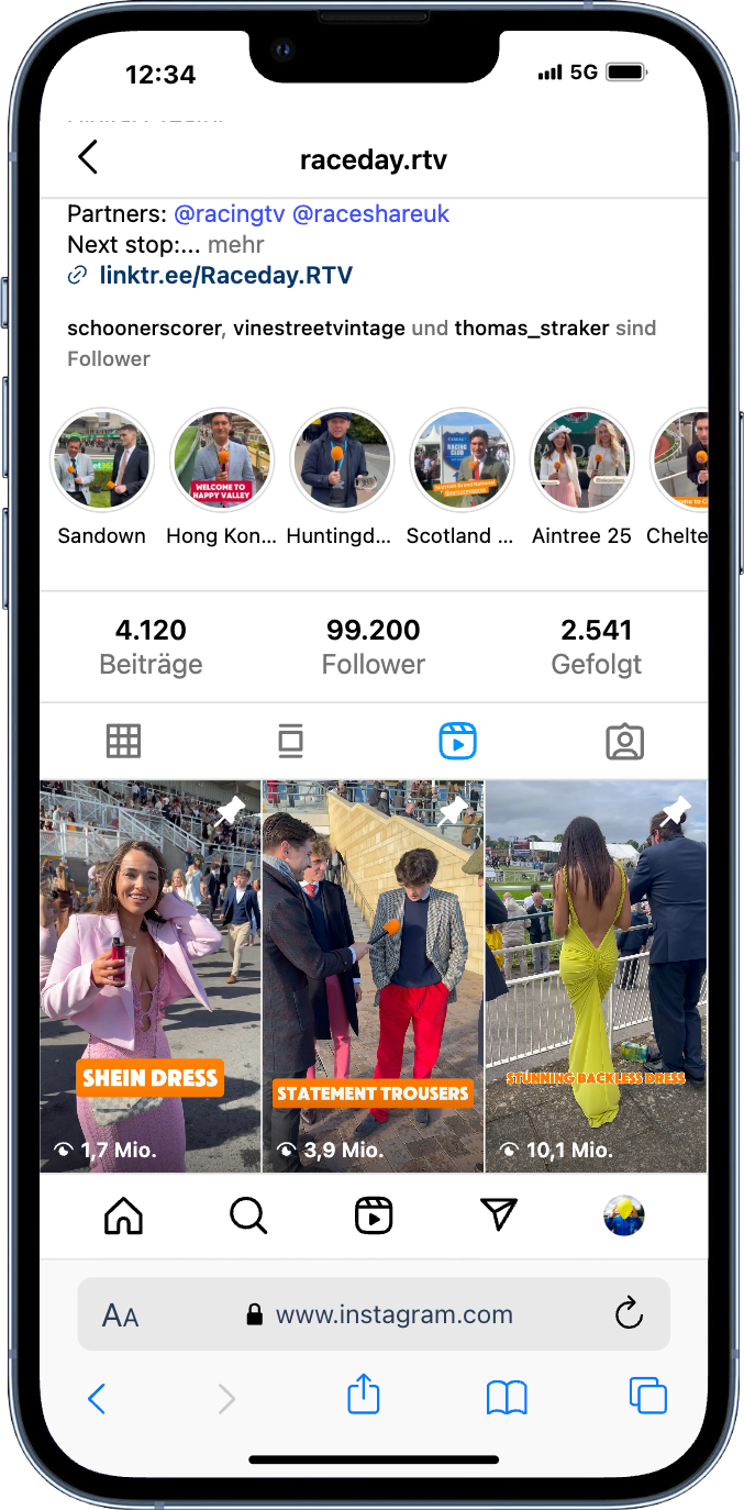 Instagram-Kanal von Raceday.TV: Eigentlich überschaubare Follower-Anzahl, dennoch enorme Millionen-Reichweiten